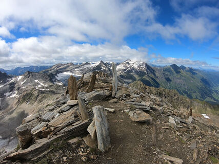 Valeriehaus - Richtung Talboden (Süden) über die Brücke gehen, nach wenigen Gehminuten (ca. 800m) rechts halten. Vorbei bei der Moiselsalm nun stetig bergauf einem Karrenweg folgen. Nach ca. 500 m rechts abzweigen auf den Neuwirtweg und nun kontinuierlich Richtung Appern Schareck aufsteigen. Über das Scharekkees zum Schareckgipfel. (Achtung bei der Überquerung des Gletschers nicht zu weit östlich gehen, Gletscherabbruch). Über die Herzog-Ernst Spitz über Nidersachsenhaus retour zum - Valeriehaus.