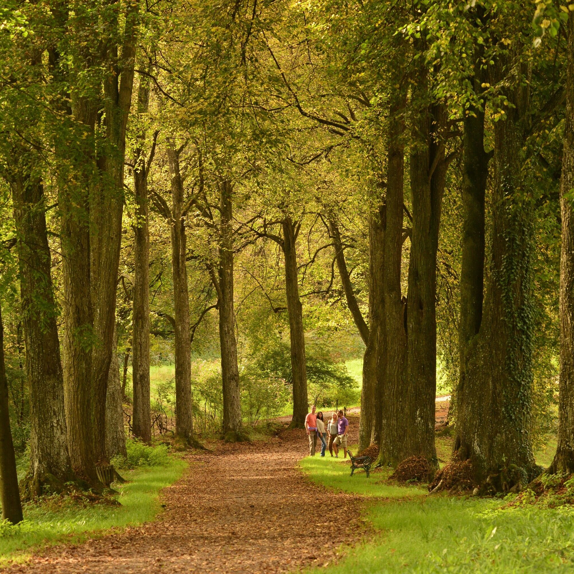 Versäume nicht nach dem letzten Haus auf der linken Seite einen Blick auf die imposanten Ruinenreste des „Rolandsbogen“ zu werfen. Nun wanderst du linksseitig am Parkgelände des „Matzenpark“ vorbei bis zum „Schloss Lipperheide“. Direkt beim Haupteingang des Schlossparkes wieder der Beschilderung Burgenweg folgen. Der Weg führt zwischen dem Löwenteich und Karpfenteich durch, vorbei am „Nymphäum“ und weiter bis zum Ausgang bei der „Burg Matzen“ und „Gut Matzen“. Wirf auf der Nordseite des Hauses von „Gut Matzen“ einen Blick auf die Hausmauer. Hier findest du sämtliche Wappen und Regentzeiten der Gutbesitzer seit Bestehen. Direkt nach dem Haus wieder rechts abbiegen und leicht aufwärts an „Burg Matzen“ vorbei bis zum Waldspielplatz. Nun wieder abwärts und an den Tennisplätzen vorbei bis zum „Matzentor“, dem Osteingang des Parks, gehen.